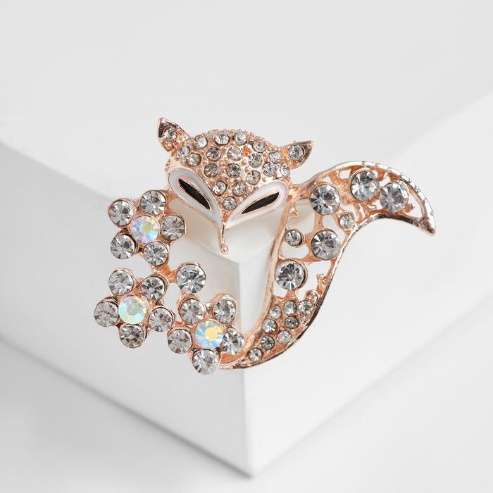 Брошь с изящным изображением лисы в цветах сочетает в себе утонченность и символизм, создавая образ, полный загадочности и природной красоты. Белая эмаль на золотистом металлическом основании подчёркивает изысканность дизайна, а аккуратные вставки из страз придают изделию лёгкое мерцание и дополнительный шарм.