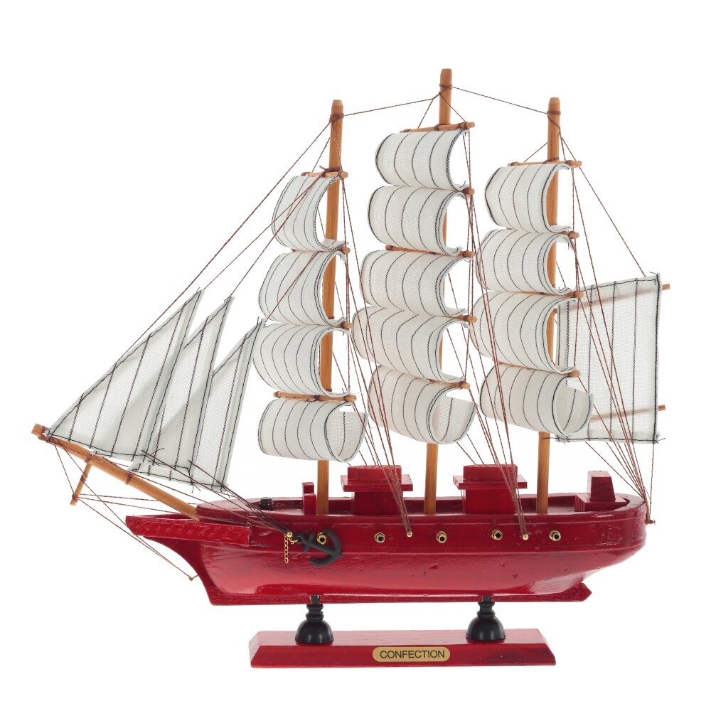 Модель деревянного парусника реалистична, состоит из множества мелких подробных деталей.  Корабль устойчиво стоит на горизонтальных поверхностях благодаря широкой деревянной подставке. Станет замечательным дополнением  коллекции парусников. Модель корабля – превосходный сувенир мужчине к любому празднику и первый шаг к воплощению мечты об увлекательных морских приключениях.
