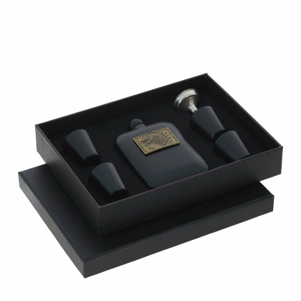 Этот стильный набор из 6 предметов станет идеальным спутником для любителей активного отдыха, пикников или уютных вечеров с друзьями. В комплект входят компактная фляжка объемом 180 мл и четыре изящные стопки по 50 мл, что делает его идеальным для спиртных напитков. Фляжка и стопки изготовлены из коррозионностойкой стали, что обеспечивает их долговечность и надежность в использовании. Черный цвет придает набору элегантный и современный вид, а воронка, также входящая в комплект, с легкостью поможет налить напиток без проливаний. Размеры набора делают его удобным для хранения и транспортировки. Этот набор станет отличным подарком на любые случаи, а также станет незаменимым помощником на природе, позволяя насладиться любимыми напитками в компании друзей. Вы можете быть уверены, что он не только функционален, но и эстетически привлекателен. Не упустите возможность добавить этот практичный и стильный аксессуар в вашу коллекцию или порадовать друзей оригинальным подарком.