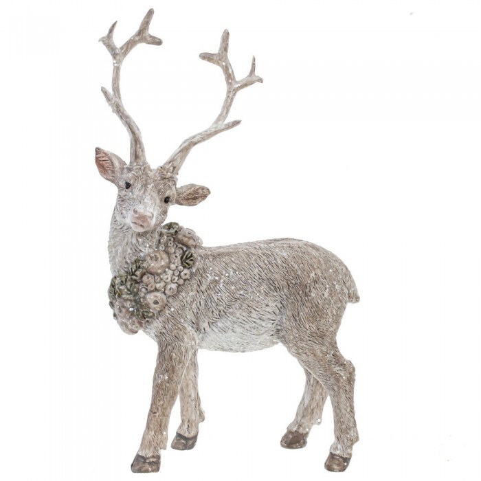 Фигурка декоративная "Олень" — это великолепное новогоднее украшение, выполненное из полимерного материала. Этот грациозный и реалистичный cсеверный олень поражает своим очарованием. Он украшен новогодним венком на шее, что придает ему особый праздничный вид. Красивые рога оленя добавляют ему мощи и изящества. Эта статуэтка станет идеальным акцентом в вашем интерьере, создавая уютную и праздничную атмосферу. Подарите себе и своим близким ощущение волшебства с этой стильной фигуркой!