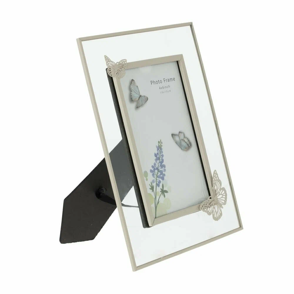 Элегантная фоторамка для снимков формата 10?15 см станет изысканным акцентом в интерьере. Основа выполнена из прочного металла, а лицевая часть — из гладкого стекла, что надежно защищает фотографию от пыли и повреждений. Светлый металлический контур и зеркальная поверхность создают эффект легкости и визуально расширяют пространство. Уголки рамки украшены ажурными бабочками, которые придают изделию романтичный, воздушный характер. Фоторамка гармонично впишется в спальню, гостиную или рабочее место, подчеркнет важные моменты жизни и станет удачным подарком к любому событию.