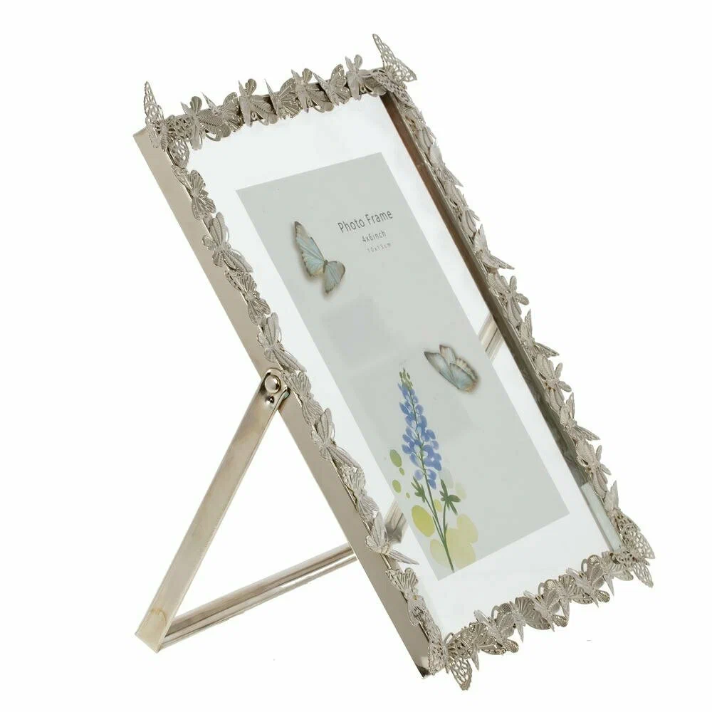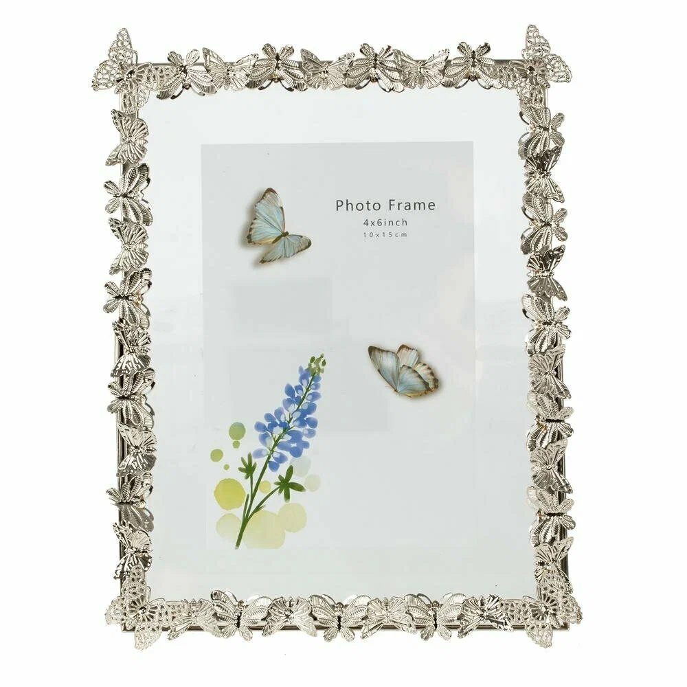 Элегантная фоторамка для фотографии формата 10?15 см станет изысканным акцентом в любом интерьере. Основа выполнена из прочного металла с покрытием под серебро, по периметру украшена объёмным декором в виде бабочек и листьев, что придаёт изделию утончённый, почти ювелирный вид. Прозрачное стекло надёжно защищает снимок от пыли и повреждений, сохраняя яркость красок на долгие годы. Рамка идеально подойдёт для семейных фото, свадебных и детских снимков, памятных открыток. Её можно разместить на столе, комоде или полке, создав уютную атмосферу и стильную галерею дорогих сердцу моментов. Отличный вариант для подарка на любой праздник.