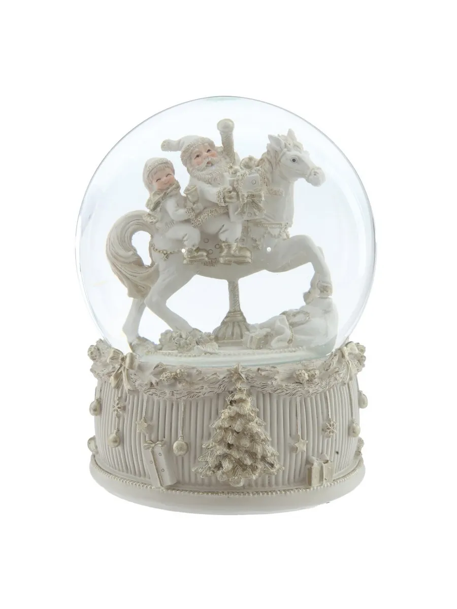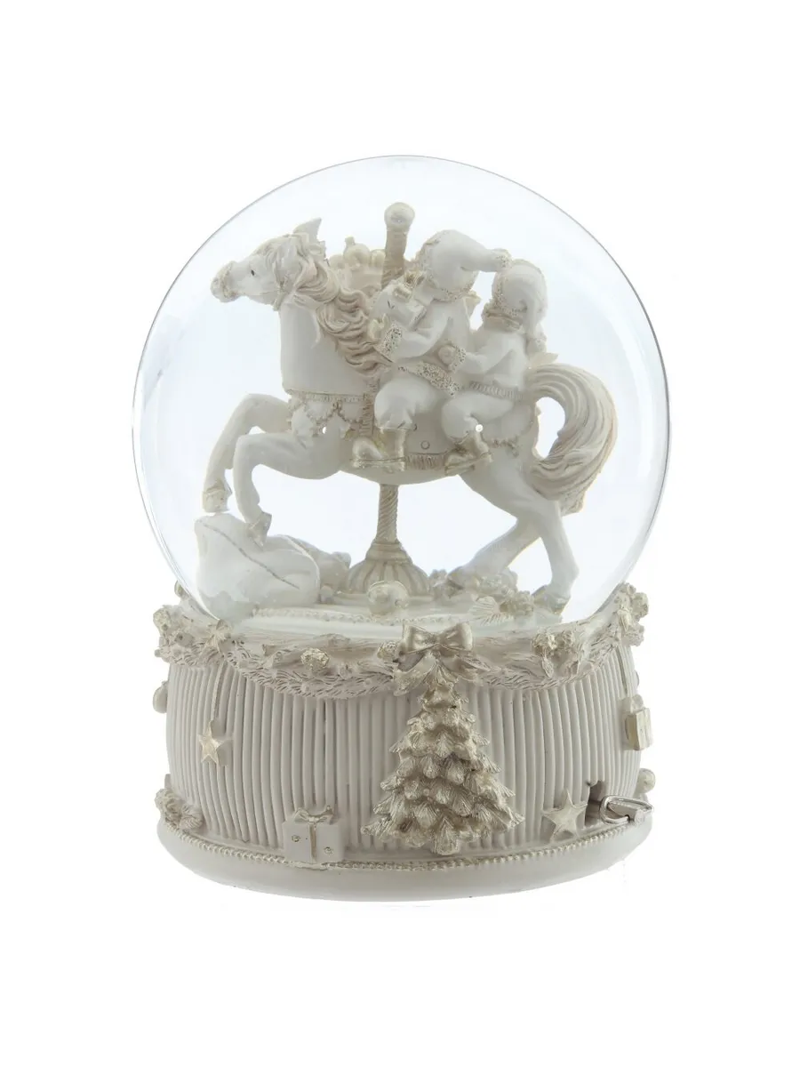 Размер: 14 см (длина) × 14 см (ширина) × 19 см (высота). Декоративная фигурка "Карусель" в стеклянном шаре выполнена из полимера и стекла. Сочетание прочности и элегантности делает её прекрасным новогодним украшением. Яркие детали, сияющие элементы и продуманный дизайн выделяют фигурку среди других предметов интерьера. Она украсит ваш дом и станет оригинальным подарком. Подарите близким немного волшебного настроения, создайте праздничную атмосферу, наполните дом теплом и вернитесь в беззаботные дни детства. Пусть ваш дом остаётся местом радости и магии.
