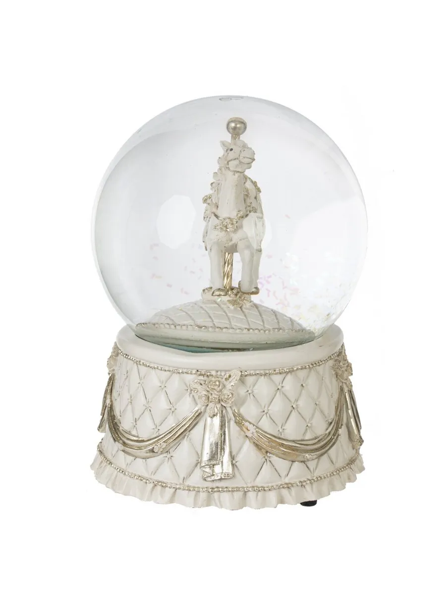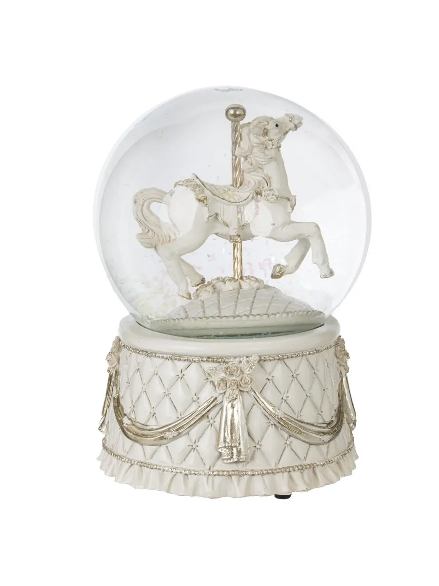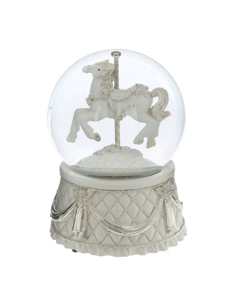 Размер: 10 см (длина) × 10 см (ширина) × 14 см (высота). Декоративная фигурка "Карусель" в стеклянном шаре изготовлена из полимера и стекла. Сочетание прочного и изящного материала делает её идеальным новогодним украшением. Яркий декор, сверкающие детали и тщательно проработанный дизайн выделяют фигурку среди других элементов интерьера. Она прекрасно подойдёт как для украшения дома, так и в качестве оригинального подарка. Подарите близким частичку волшебства, и "Карусель" создаст праздничную атмосферу, наполнит дом уютом и напомнит о детстве. Пусть ваш дом станет местом, где всегда царит радость и магия.