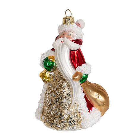 Елочное украшение Дед Мороз Зимнее барокко, выполнен из стекла, декорирован блестками и мелким бисером.