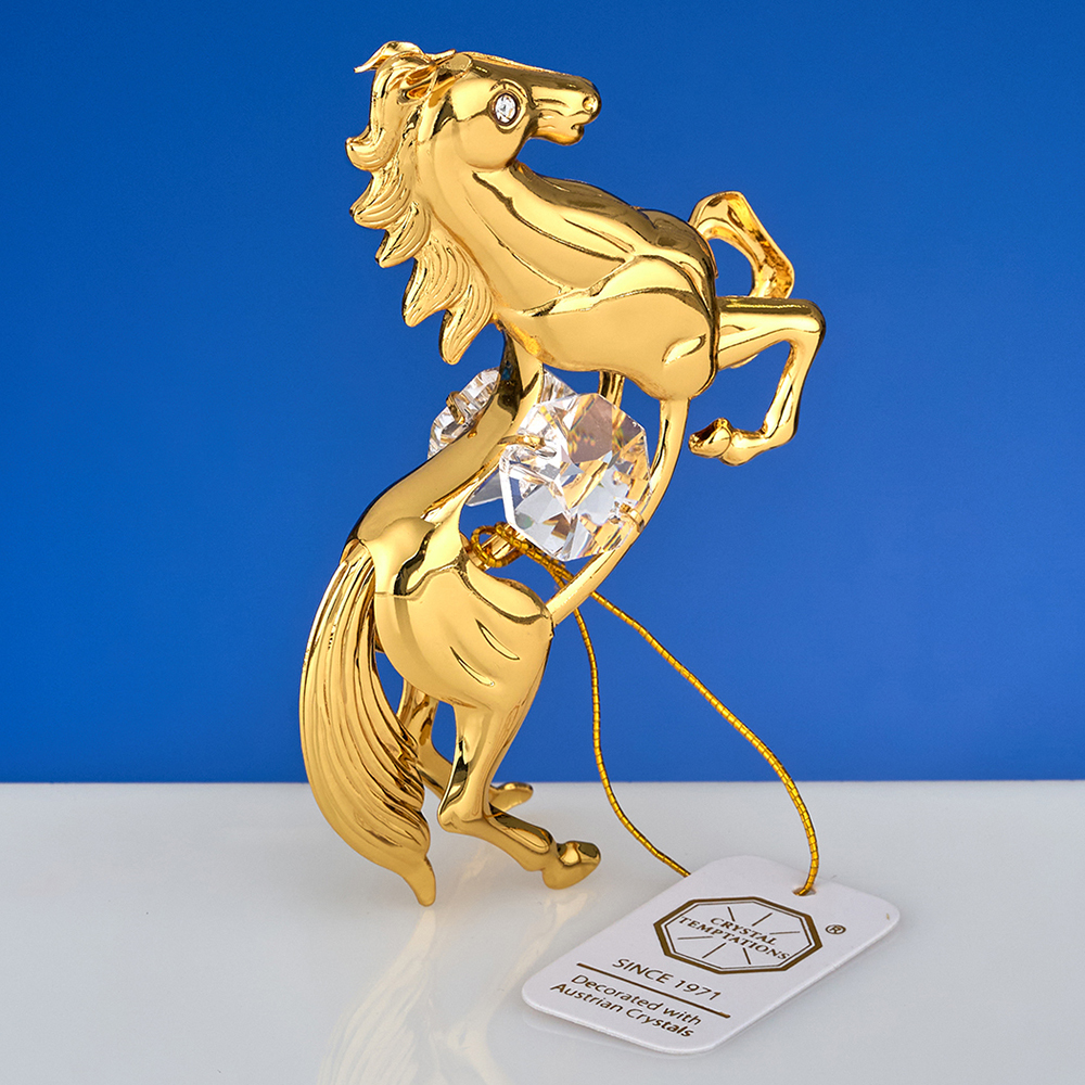 Фигурка статуэтка Лошадь. Изящная фигурка, статуэтка годового знака зодиака Лошади. Прекрасный подарок человеку, родившемуся в год этого знака. Лошадь считается символом благородства, смелости. Компания Crystocraft сувениры с кристаллами. Продукция транснациональной корпорации Crystocraft, являющейся лидером по производству широкого спектра сувениров и подарков из металла с использованием только оригинальных кристаллов. Такой подарок никого не оставит равнодушным, он подойдет для декорации любого помещения. С 1958 года компания Crystocraft создает изящные, качественные, яркие сувениры, декорированные кристаллами различных размеров и оттенков, сочетающие в себе превосходное мастерство обработки металлов и самое высокое качество кристаллов. Каждое изделие упаковано в индивидуальную подарочную упаковку, что придает ему завершенный и презентабельный вид.
