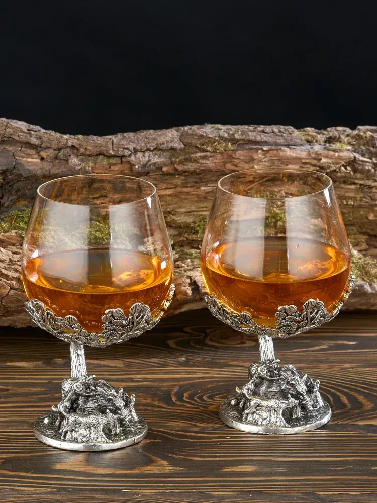 Бокалы для коньяка "Кабан и Волки" оригинальный подарок практически к любому празднику. Бокалы для коньяка подарочные с головами животных перевертыши будут красиво смотреться на вашем праздничном столе. Подставка бокала имеет оригинальную стилизованную форму в виде головы Кабана и Волков, цвета античного золота. размер бокала для коньяка 8*8*13 см. Объем бокала 300 мл, вес одного бокала 283 гр., диаметр подставки 6 см., диаметр горлышка 6 см. У бокала эффектная форма, оригинальная форма подставки ножки в виде животных, которую очень удобно держать в руке. Универсальные бокалы перевертыши идеально подойдут для виски, шампанского и вина, прохладной воды, коктейлей и лимонада. Они легко станут новинкой, практичной альтернативой традиционной посуде на вашей кухне используя, как для алкогольных и безалкогольных напитков будь то виски или вино, пиво или просто сок. При изготовлении использовано уникальное стекло, оно не теряет свой товарный вид при ежедневном применении, устойчиво к воздействию чистящих средств и в тоже время абсолютно безопасно. Бокалы винные имеющий модный дизайн и подходят для сервировки стола дома, на кухне, а также для бара. Идеальный презент учителю или воспитателю, можно подарить брату, другу или коллеге. Вы можете подарить любимому мужчине или мальчику, начальнику или шефу, возможно мужу или молодому человеку, отцу. Декоративные бокалы станут прекрасным подарком на Новый год или День рождения, Новоселье или Юбилей. Бокалы нельзя мыть в посудомоечной машине. Отличительной особенностью бокалов перевертышей являются головы животных. Эксклюзивный подарочный набор стопок перевертышей выполнен в технике художественного литья под вакуумом. Головы животных изготовлены из сплава олова и металла. Стеклянные бокалы выполнены из огнеупорного стекла. При этом они обеспечивают бокалу устойчивость когда он наполняется жидкостью.
