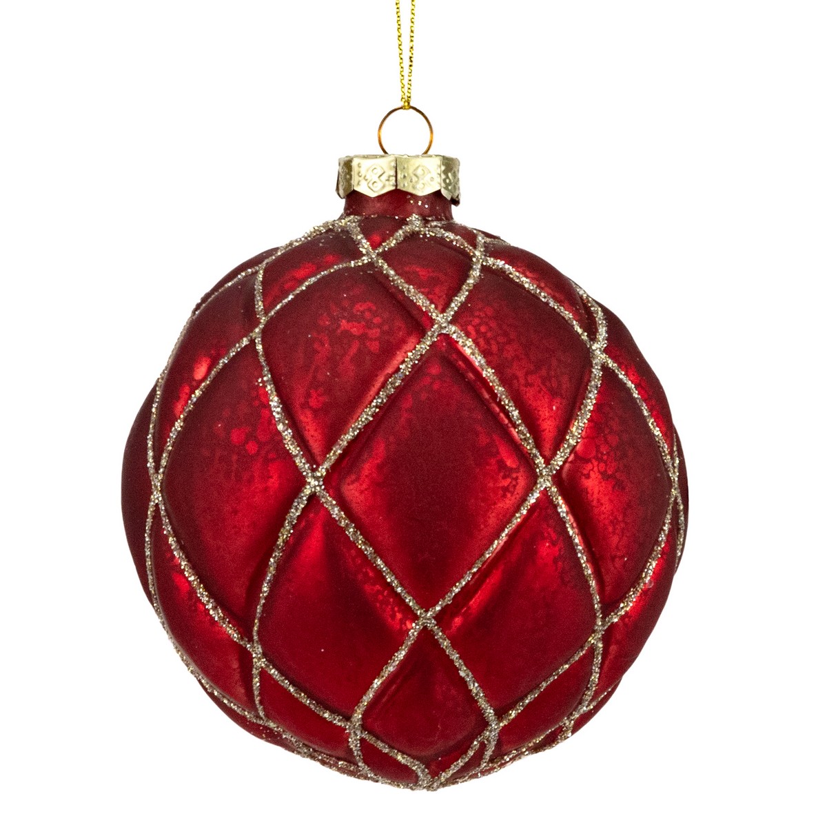 Стеклянное украшение в форме шара насыщенного красного цвета, станет ярким и выразительным элементом вашего праздничного декора или интерьера. Его насыщенный оттенок придает торжественность и уют, делая украшение заметным и стильным акцентом.