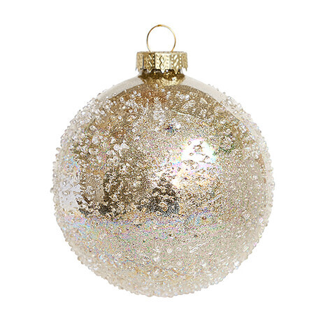 Стеклянный шар «Ледяной Дождь» из коллекции новогодних украшений на ёлку. Всё гениальное просто! Эффект особого изящества и тонкое чувство стиля достигаются создателями этого шара простым, но действенным способом: шар приятного оттенка покрыт кристаллической обсыпкой, имитирующей замёрзшие капли «ледяного дождя».
