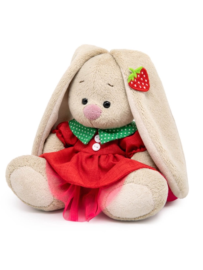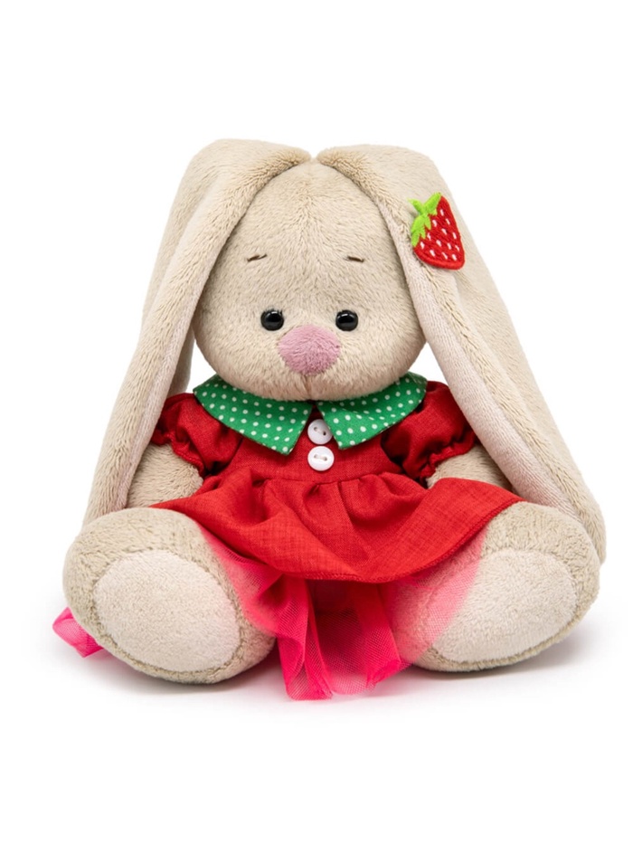 Мягкая «Зайка Ми» — это очаровательный персонаж, который станет идеальным другом для вашего ребёнка. Её компактный размер и яркое красное платье с земляничкой, делают её универсальным выбором для игр, украшения комнаты или как стильного подарка. Мягкий искусственный мех и наполнитель из синтепона обеспечивают комфорт и безопасность.